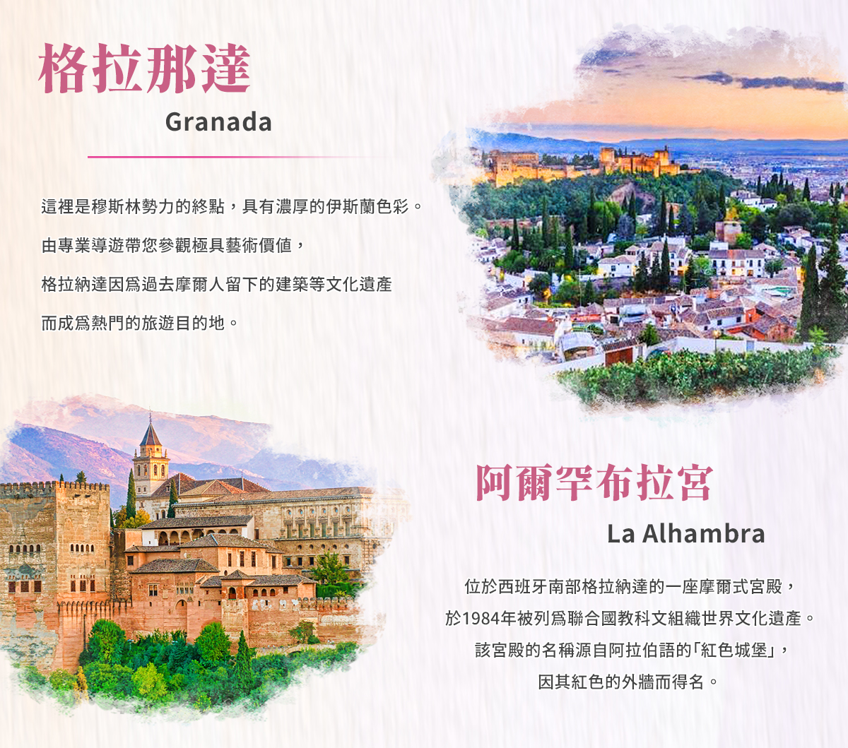 阿罕布拉宮更新團體預訂規則,嚴格把關每日進場人數及開放購票時間。若遇當天預約已滿、無法接受預訂,則改安排參觀【格拉納達皇室禮拜堂】不便之處懇請貴賓諒解。