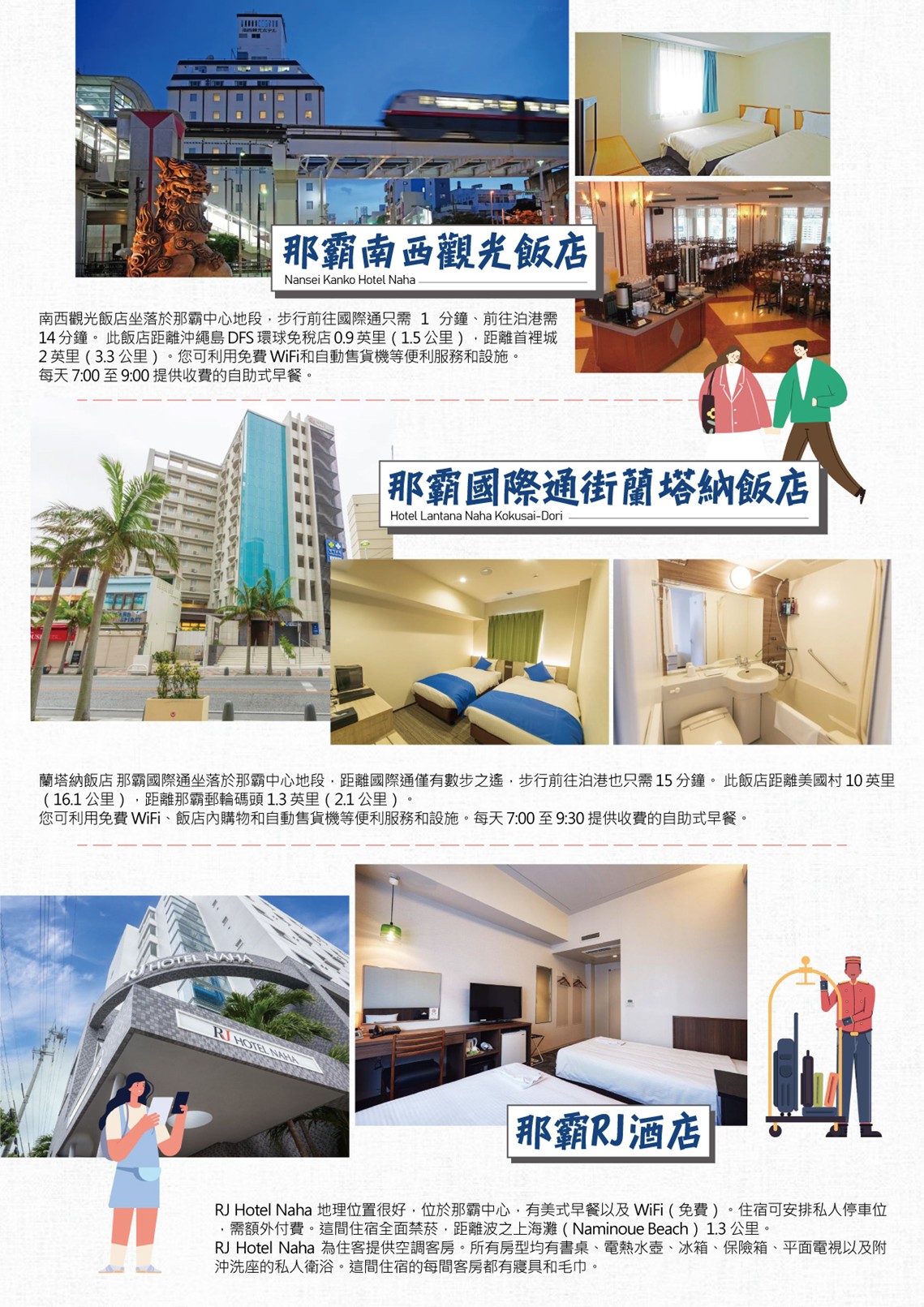 • 1.高雄-沖繩,來回經濟客艙團體票。