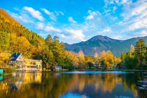 金麟湖位於大分縣湯布院地區,是由湯布院川上游形成的湖泊,以湖水清澈見底和四周被山林環繞的寧靜景致聞名。清晨湖面常有霧氣繚繞,映照周邊山景,景色如詩如畫,是旅客散步、拍照與享受自然氛圍的熱門地點。