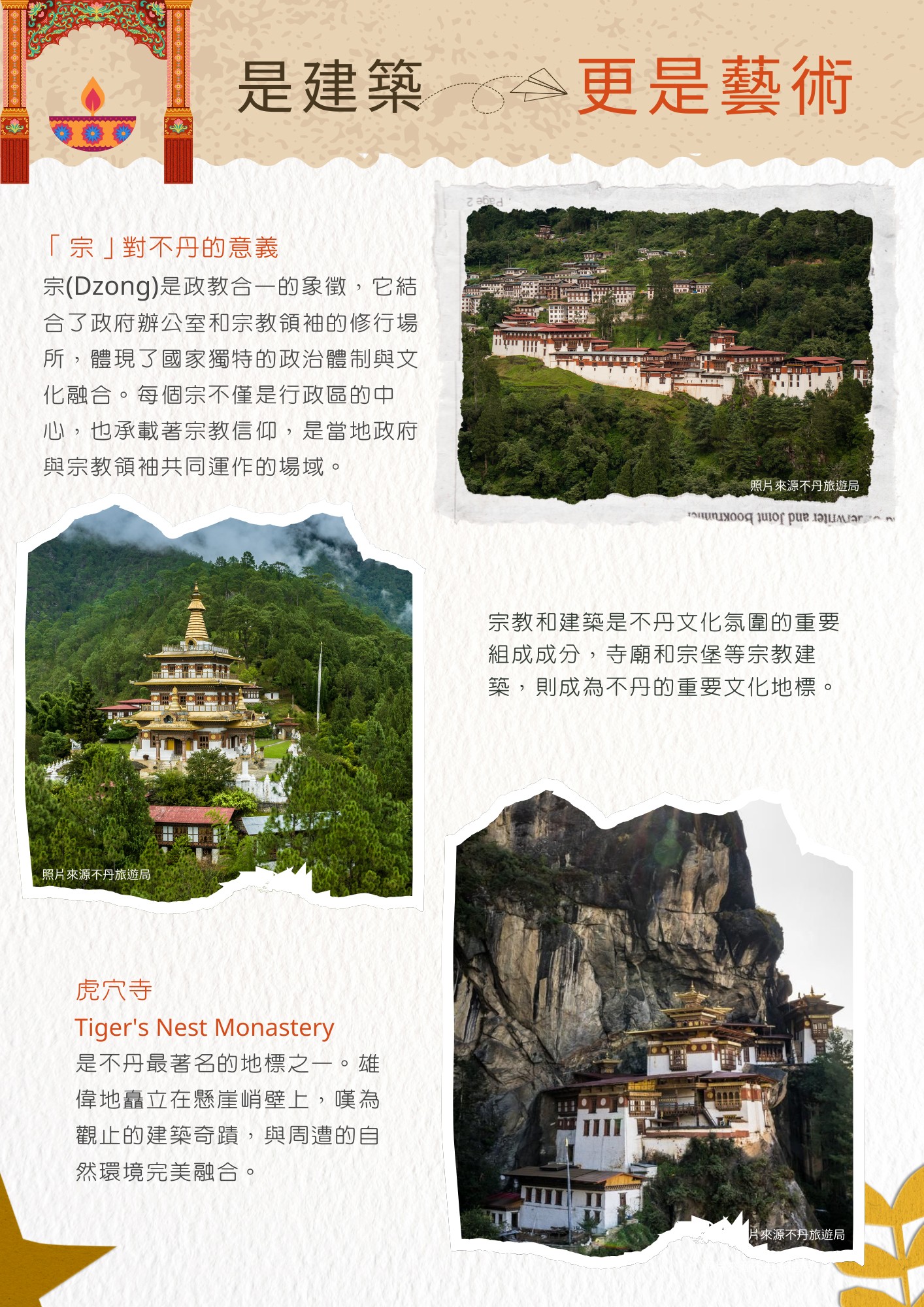 不丹曲宗(Dzong)是結合了宗教與行政功能的建築,是現任國王的辦公室及各部門 所在地,也是不丹的宗教中心,白色建築顯得格外典雅莊嚴。
