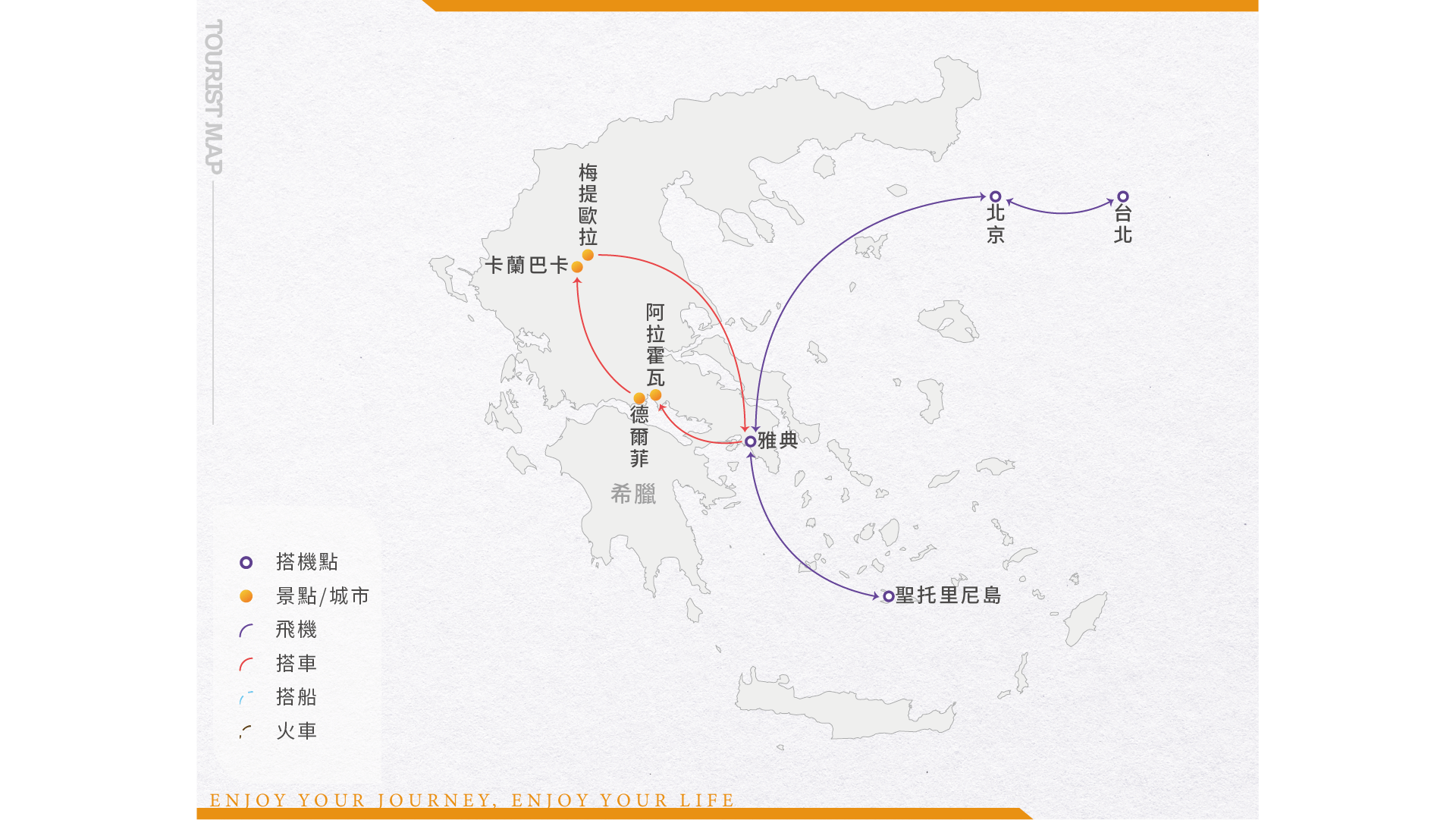 ※ 本行程搭乘中國國際航空飛往希臘雅典國際機場,將於北京轉機,敬請旅客自行辦理【台胞證】