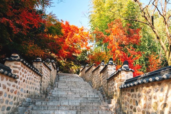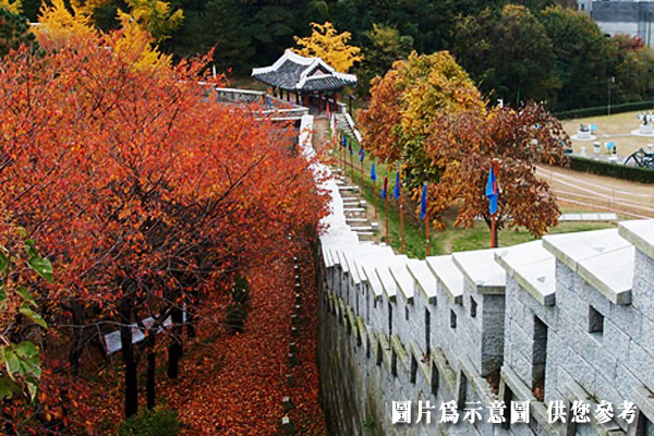 【東萊邑城(賞楓)東萊邑城是保存良好的朝鮮時代古城遺址,每到秋季,城牆與城門周圍被滿山楓紅與金黃銀杏環繞,古老石牆與繽紛秋色交織出歷史感十足的景致。遊客可沿著城牆步道散步,欣賞城郭與紅葉相映的畫面。賞楓的同時,更添一份莊嚴而浪漫的氛圍,是釜山秋季賞楓的隱藏名所之一。