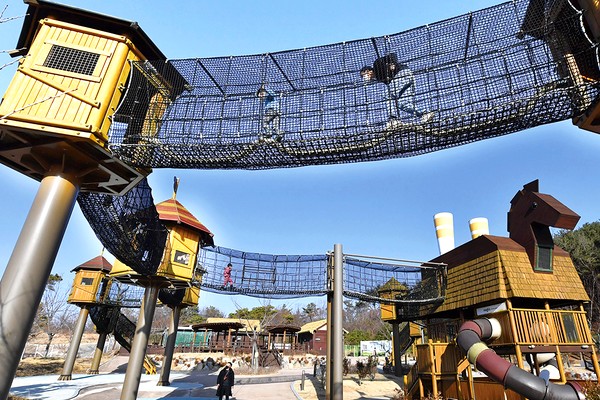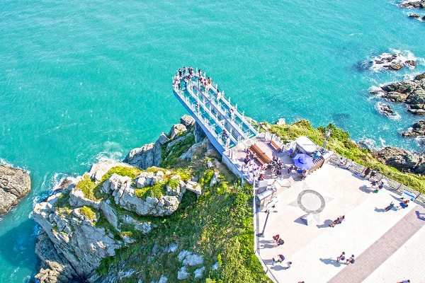 【五六島Skywalk】位於韓國東海與南海交界的此處,在2012年9月12日開始動工,於2013年10月18日正式開放,以「行走在天上」之意將步道命名為「五六島Skywalk」。Skywalk位於高達35公尺的懸崖上,用鐵製的支柱加上24片玻璃板,做成呈馬蹄型,全長15公尺的玻璃步道。