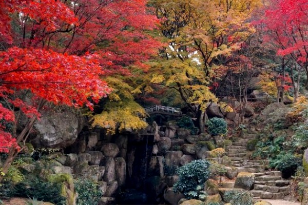 【金剛公園(賞楓)是當地知名的賞楓勝地,每年秋天 10 月下旬至 11 月上旬,園區內的楓葉與銀杏逐漸染上金黃與火紅,園區內有平緩舒適的步道,適合漫步賞楓,欣賞層層暈染的紅葉美景。搭配園內的古樸寺廟、步道與纜車景觀,營造出浪漫又靜謐的氛圍。