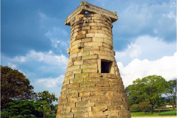 【瞻星臺】是東方現存的最古老的天文臺,建於新羅27代王善德女王時期(632~647年),用於觀測天空中的雲氣及星座,借此占卜吉凶斷定國家大事。