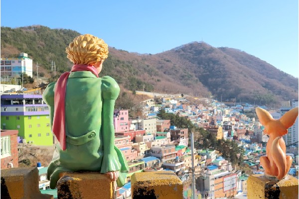 【甘川洞壁畫村】是位在山腳下,呈階梯式聚集在一起的美麗村落,被人們稱為釜山的馬丘比丘。在文化村裡,旅客可以看到各式主題的小房子,以及巷弄內的造型擺設等,這些都是村民們的創意,旅客也可以跟著村民來場有趣的體驗觀光呢!