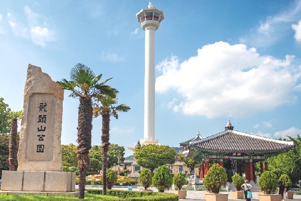 【龍頭山公園+鑽石塔(含展望臺門票)】但由於所在位置於龍頭山公園的山頂、相對位置高,所以景觀相當好,更可一次眺望釜山市景與海景,天氣好的時候可以看到「廣安里」或「海雲台」一帶風光,時間對的話也可以看到「影島大橋」的開橋。