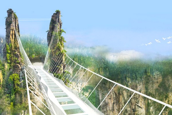 《雲天渡》玻璃橋號稱世界最長、最高的全透明玻璃橋,橋長約 430 米,橋寬 6 米,橋面距谷底相對高度約 300 米,可站 800 人,橋面全部採用透明玻璃鋪設,橋中心有全球最高的蹦極台,整個工程無 鋼筋支架,是一種全玻璃結構的橋樑。該玻璃橋建成後,將成為中國旅遊的一大奇景。